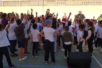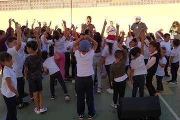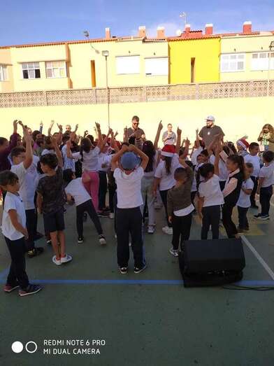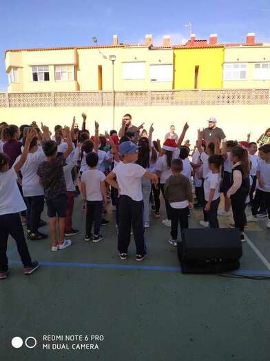 Los escolares del CEIP Caserones, de Caserones Altos (Telde), disfrutaron este martes del espectáculo musical protagonizado por el dúo Playacoco.