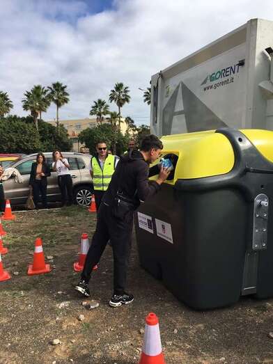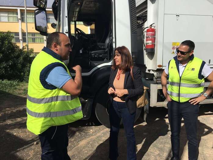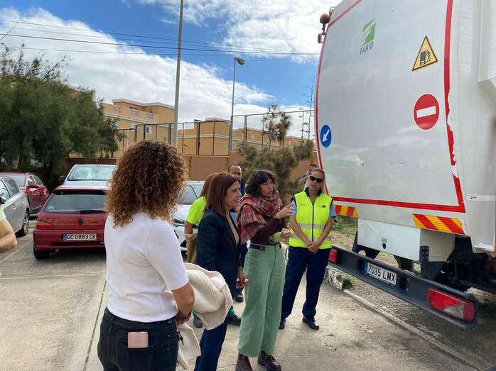 Hernández compartió con los estudiantes las explicaciones de la educadora ambiental y de los operarios del servicio de Limpieza, que acudieron con un camión de recogida de residuos para mostrarles cómo es el proceso de vaciado del contenedor.