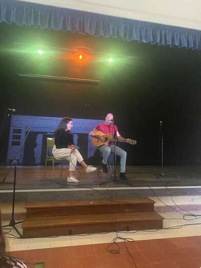 "La jornada fue muy emotiva al establecerse un fluido diálogo con el alumnado, culminando con la actuación de Iván y de Julia para júbilo del público allí presente", apuntan desde el instituto teldense.