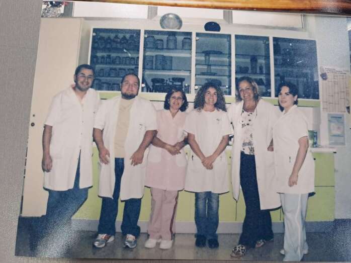 Arriba tuve a Paco Monzón, que estuvo muchos años. Fue un muchacho muy bueno. Y, respecto a Diego, es una persona importante. Se prejubiló hace dos años y cada dos por tres viene y nos trae un queque, se toma un café... De los antiguos quedan José Manuel y Marina, que llevan conmigo 35 y 25 años respectivamente, y también he estado rodeada de farmacéuticos como Cristina, Ana María y Juan Gabriel.