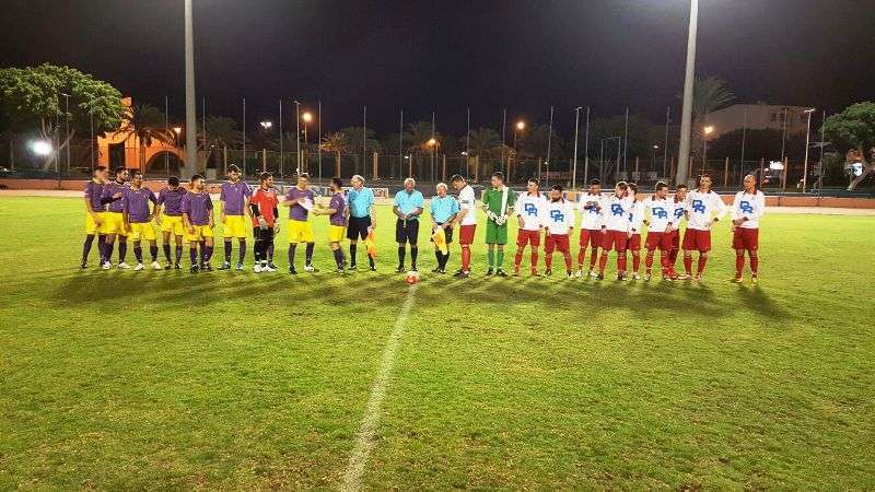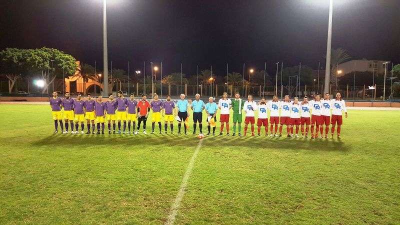 Los dos equipos, momentos antes del encuentro de esta noche en Vecindario (Foto TA)