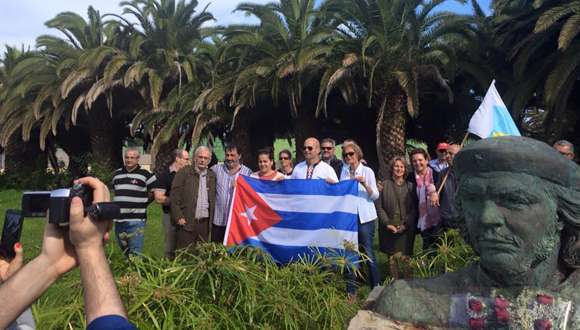 El activista cubano Gerardo Hernández, miembro del grupo cubano Los Cinco, cuyos integrantes estuvieron 16 años presos en cárceles de Estados Unidos acusados de espionaje, rindió homenaje este sábado en Telde al Che Guevara ante el busto del ideólogo de la revolución castrista en el parque urbano de San Juan. Junto a Hernández se encontraban su esposa Adriana Pérez y funcionarios de la Embajada de Cuba en España. TA ofrece imágenes.