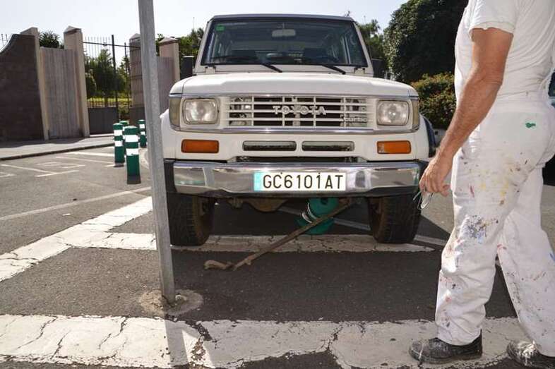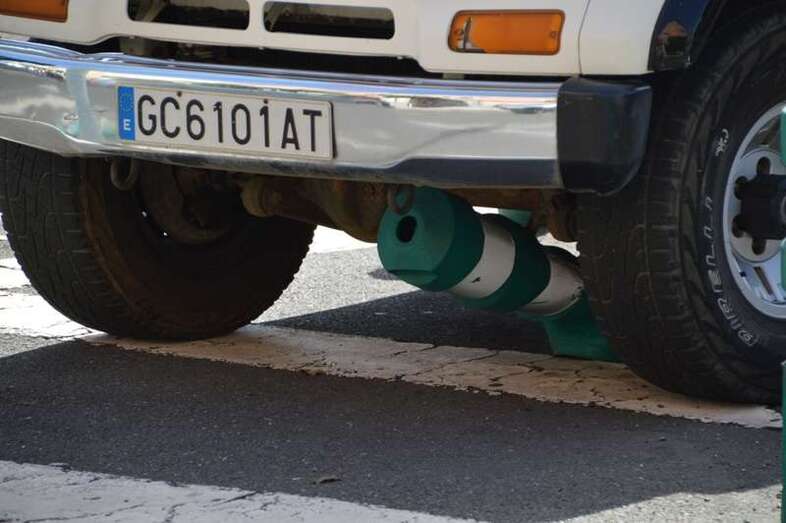 Un vehículo todoterreno del parque móvil del Ayuntamiento de Telde, adscrito al área de Servicios, sufrió hace unos minutos un percance al romperse el eje delantero de la dirección. El suceso ocurrió en el giro de la rotonda del Pebetero, próxima la puerta noreste del parque urbano de San Juan. El vehículo impactó contra un bolardo de plástico.