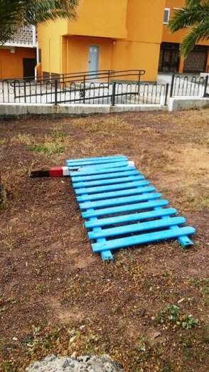 La moda de atentar contra los parques infantiles de Telde va camino de ser un mal endémico. Esta jornada le tocó al equipamiento público situado en el parque central de Las Remudas, que sufrió el embate del vandalismo. Desde la Concejalía de Parques y Jardines se reitera el llamamiento a los ciudadanos para que velen por el cuidado de estas instalaciones y denuncien cualquier tropelía contra ellas. TA ofrece imágenes de los destrozos.