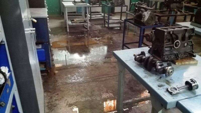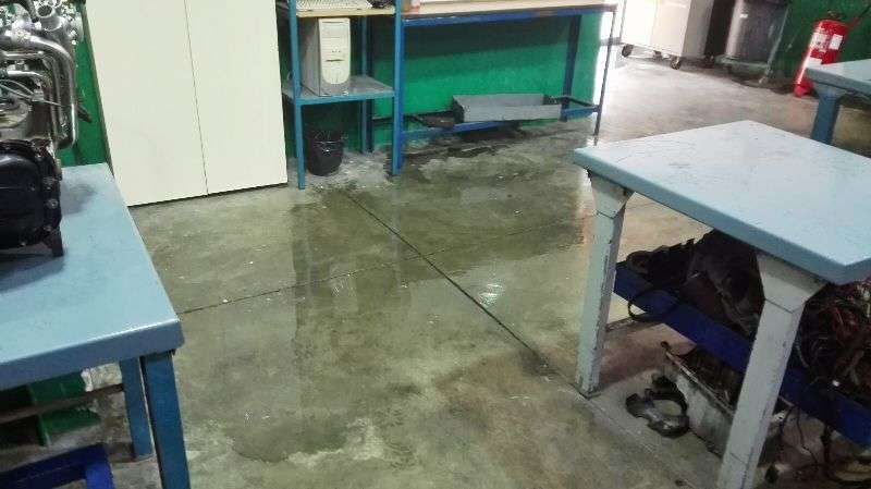 Los talleres de Mecánica del IES de Las Remudas vuelven a inundarse (Foto TA) Los talleres de Mecánica del IES de Las Remudas vuelven a inundarse (Foto TA)
