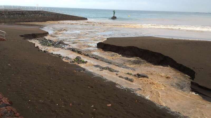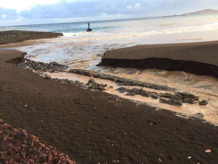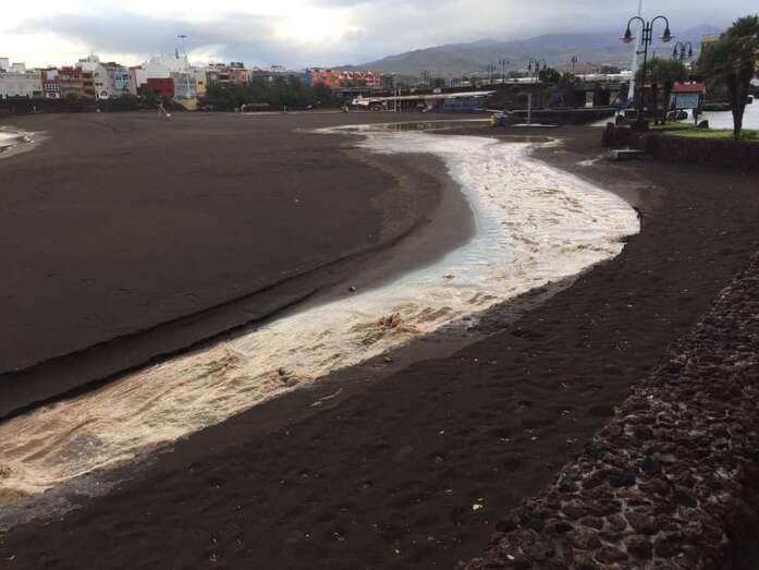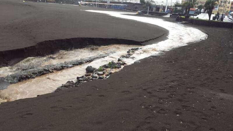 Las precipitaciones de las últimas horas han vuelto a hacer correr el barranquillo que desemboca en la playa de Melenara. El agua ha creado un surco partiendo en dos esta cala teldense que hace hace menos de cuatro meses también sufrió daños por las lluvias torrenciales acaecidos aquellos días.