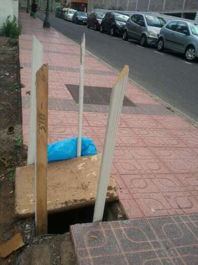 Arqueta sin tapa en la calle de Luis González Pérez (Foto C. Sánchez) Arqueta sin tapa en la calle de Luis González Pérez (Foto C. Sánchez)