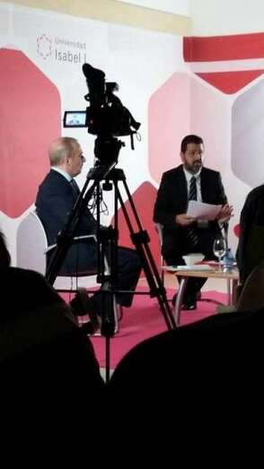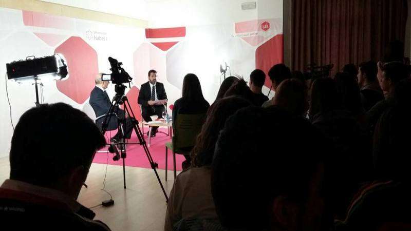 Momento de la charla del filólogo teldense en la Universidad Internacional Isabel I de Castilla (Foto TA)