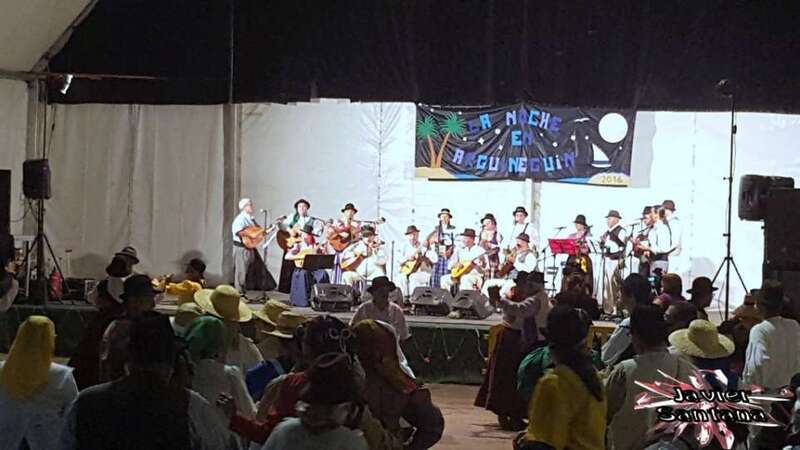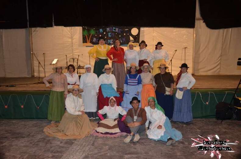 El cuerpo de baile de la AV El Roque Azucarero dejó bien alto el pabellón de Telde en el espectáculo Noche en Arguineguín, un sentido evento vespertino y nocturno que se desarrolló en la plaza Pérez Galdós del citado núcleo del Sur de la Isla y que constó de una feria de artesanía y un baile de taifas. Asistió la alcaldesa de Mogán, Onalia Bueno. TA ofrece reportaje.