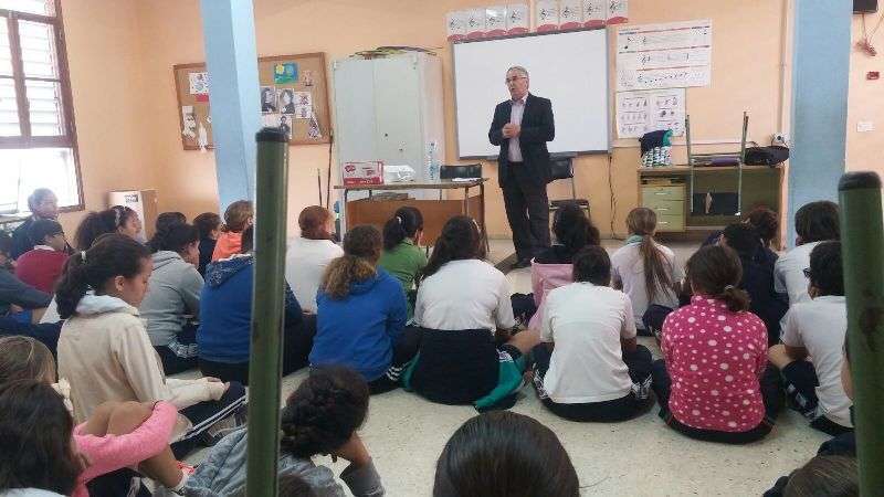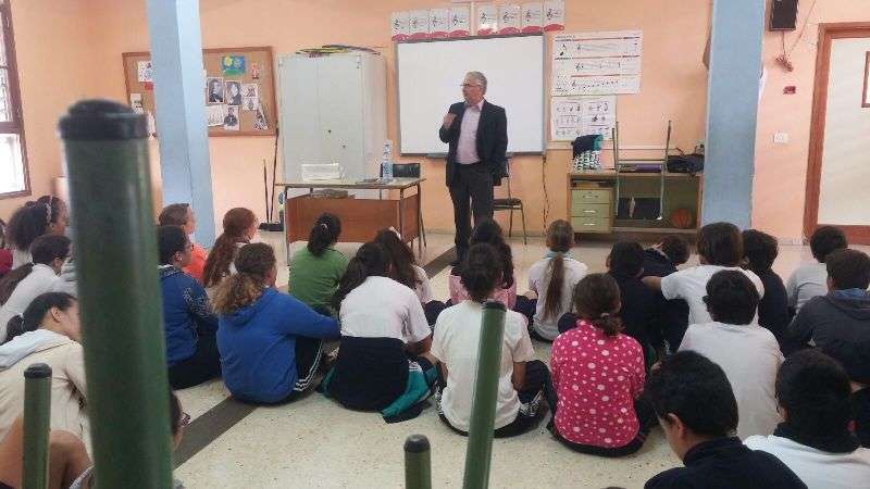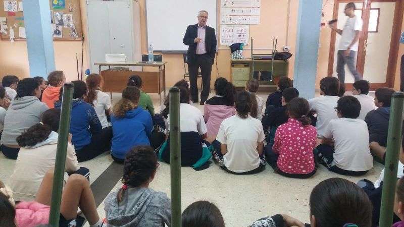 El empresario Sebastián Grisaleña se invistió este jueves por la mañana de profesor para impartir una charla a los alumnos de sexto de Primaria del Colegio León y Castillo. Grisaleña, invitado por la dirección del centro, habló a los escolares sobre emprendeduría en el marco de ciclo de charlas de carácter formativo. TA avanza imágenes.