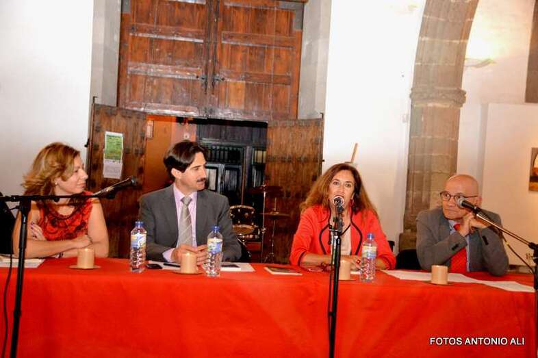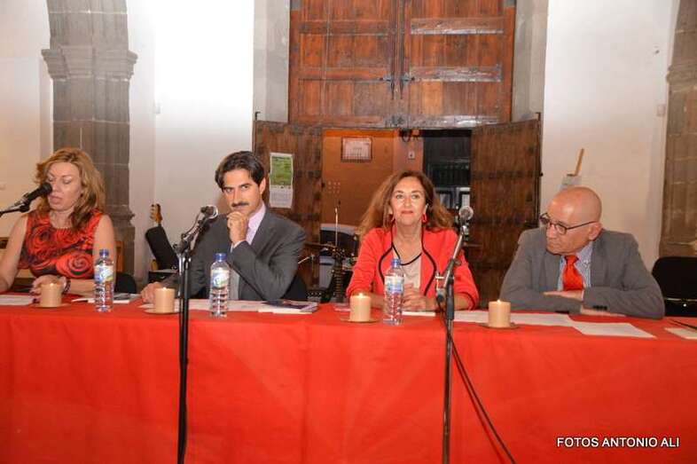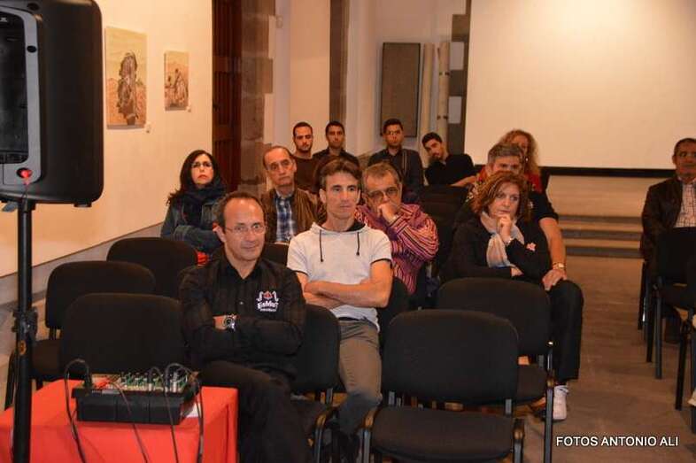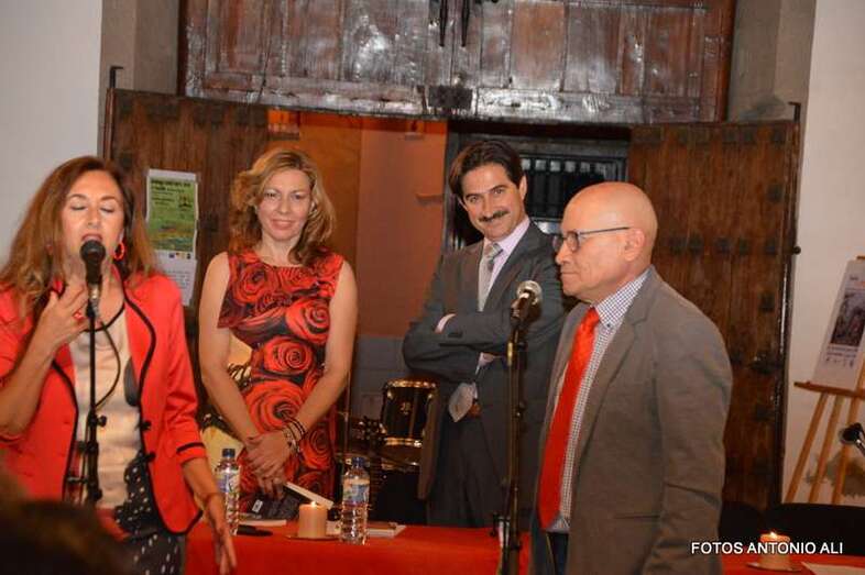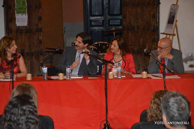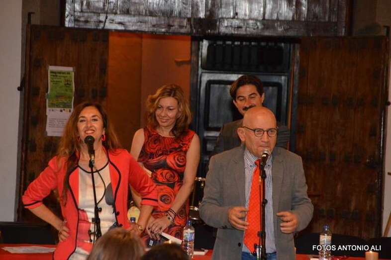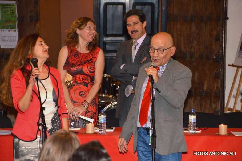 Los autores de los libros, anoche arropados por varios asistentes al acto (Foto Antonio Alí)