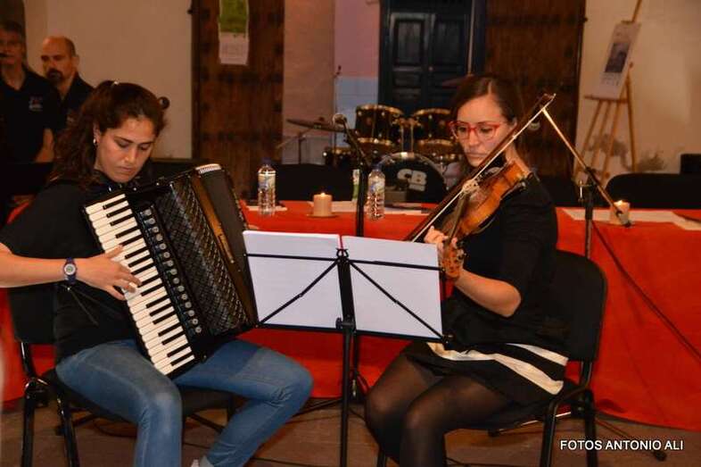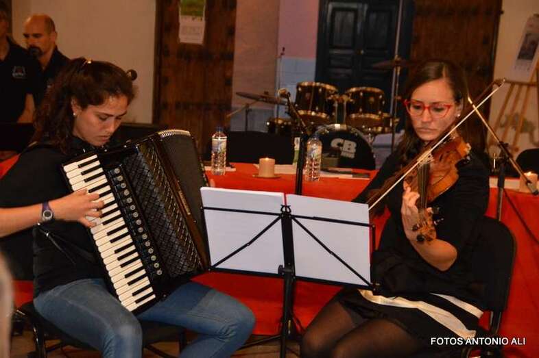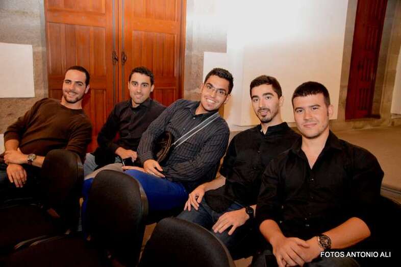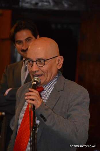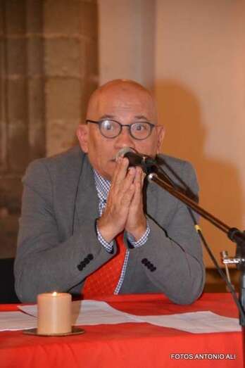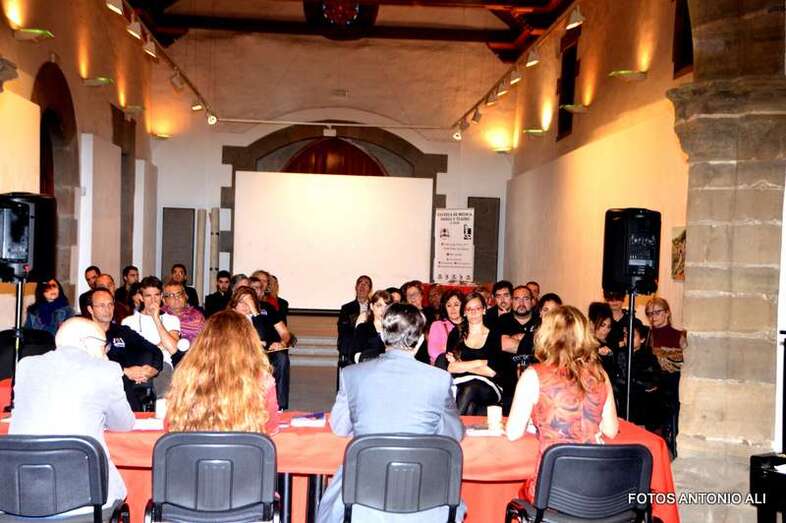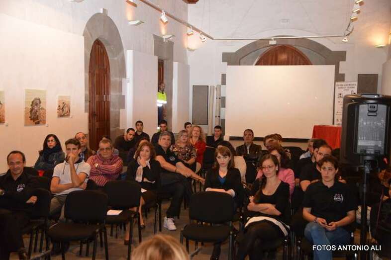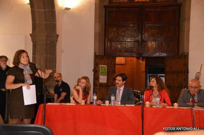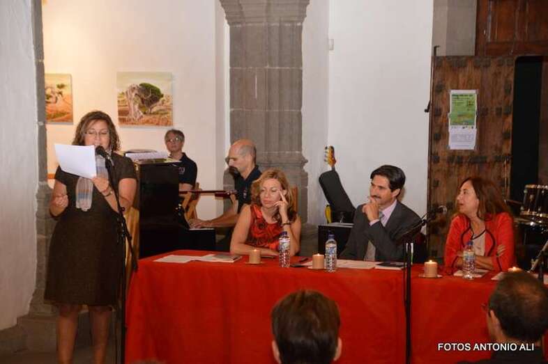 Los autores de los libros, anoche arropados por varios asistentes al acto (Foto Antonio Alí)