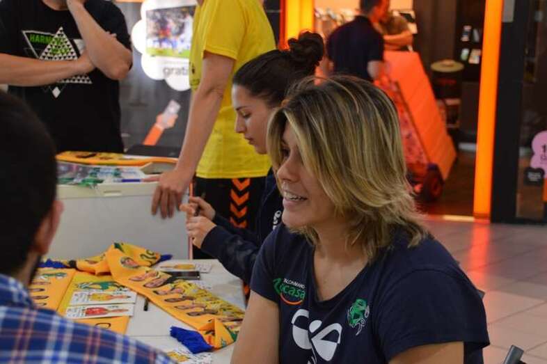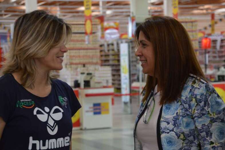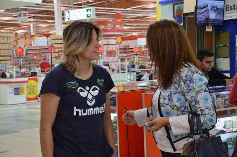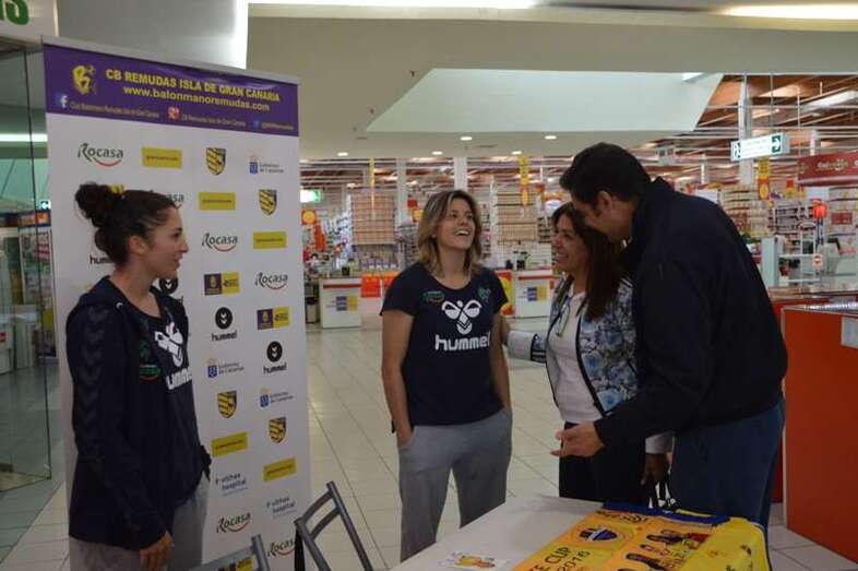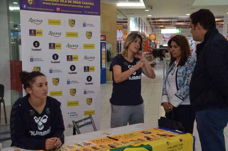 La alcaldesa de Telde, Carmen Hernández, y el concejal de Deportes, Diego Ojeda, se acercaron este mediodía al puesto que el club del Rocasa ha montado en el interior del hipermercado Alcampo para la venta de bufandas, camisetas y entradas para el partido del próximo sábado en el que se dirimirá el campeón de la Challenge Cup. Hernández y Ojeda  compartieron un rato con las jugadoras María Luján y Carmen Toscano y dieron ánimos al equipo de cara al encuentro. También estuvo por allí el exconsejero insular Antonio Hernández Lobo. TA ofrece imágenes.