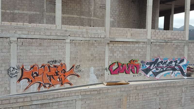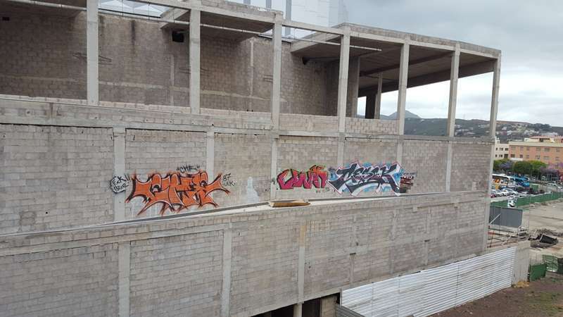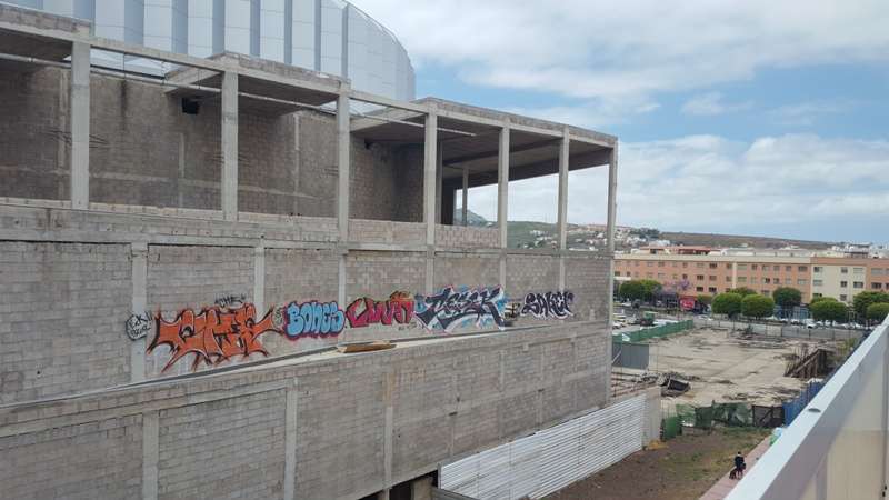 Quince años después de que se pusiese la primera piedra, un grupo de jóvenes del municipio han encontrado por fin un uso al Palacio de la Cultura de Arnao: sus muros sirven ya como soporte de pintadas. Un vecino del barrio detectó esta semana cómo los artistas accedieron a uno de los laterales del inmueble inacabado y se dedicaron, durante más de una hora y con total impunidad, a realizar todo tipo de garabatos con una tipografía francamente ilegible y en la que sólo se distingue una expresión grosera hacia los cuerpos y fuerzas de seguridad del Estado. El denunciante se pregunta si el Ayuntamiento de Telde no tiene previsto aumentar la altura del vallado para evitar estampas como estas.