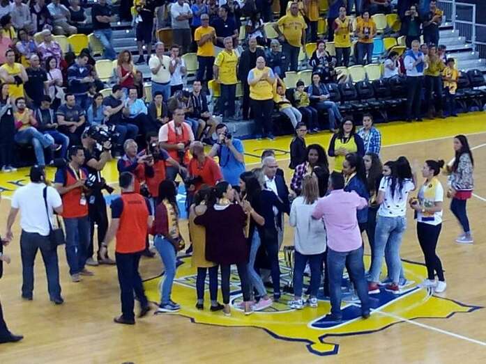 El CB Herbalife Gran Canaria homenajeó este domingo al Rocasa Gran Canaria ACE, que ayer se proclamó campeón de la europea Copa EHF Challenge femenina de balonmano. El Pabellón GC Arena recibió en pie y entre una fuerte ovación a las campeonas minutos antes del partido que enfrentó al Herbalife contra el Estudiantes.