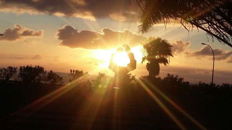 La obra escultórica Goro,  del artista Máximo Riol Cimas, que se alza en una pequeña rotonda que está en la salida de la urbanización industrial del mismo nombre, ofrece a los amantes de la fotografía bellas instantáneas al amanecer como las captadas este viernes por el colaborador de este diario Gumersindo Hernández cuando los primeros rayos solares del día pasaban por el interior de la monumental pieza. TA ofrece imágenes.