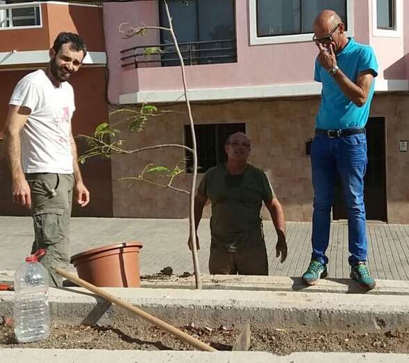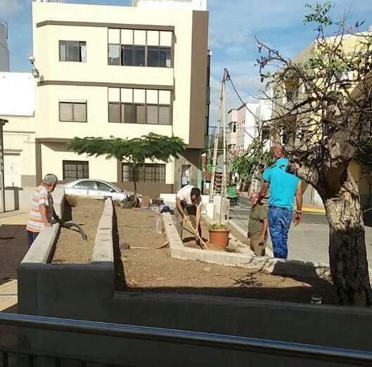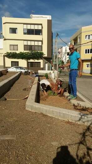 Vecinos del sector costero de Clavellinas se han puesto este sábado a la tarea de adecentar y plantar en los parterres de la descuidada plaza pública situada delante de la fachada principal del templo bajo la advocación de Santo Cura de Ars. TA ofrece imágenes.