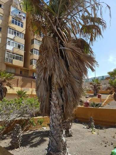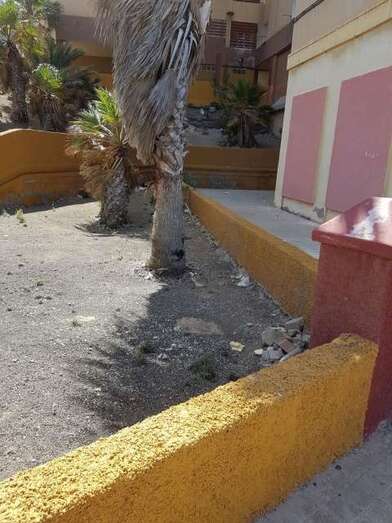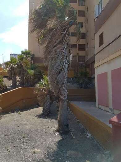 Vecinos del Valle de Jinámar denuncian el mal estado en que se encuentran el parque infantil y las palmeras de los parterres que están situados en la trasera de la calle de Manuel Alemán Álamo. Aseguran que las palmeras necesitan ser podadas urgentemente porque están “todas enfermas”. TA ofrece imágenes.