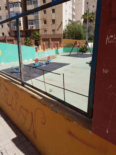 Estado del parque infantil situado en la trasera de la calle de Manuel Alemán Álamo (Foto TA)