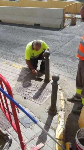 Operario municipal arregla la tapa de registro desfondada (Foto TA)