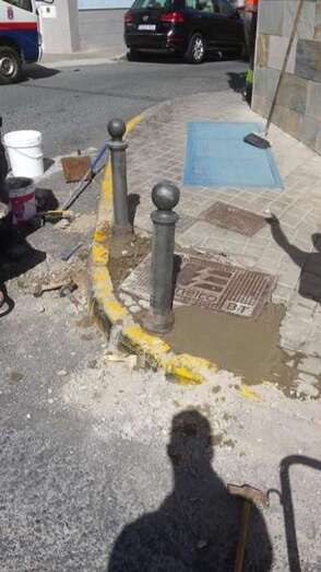 La denuncia vecinal efectuada el pasado viernes por medio de TELDEACTUALIDAD sobre el peligro de una tapa de registro desfondada en la esquina de la calle de Nicolás Copérnico, en La Herradura, ha surtido efecto. Personal municipal adscrito a la Concejalía de Vías y Obras repararon ayer lunes la acera que estaba en mal estado y representaba un riesgo de caídas para niños y adultos. Se han colocado dos bolardos, El peligro estaba frente a las puertas del colegio público Francisco Tarajano. TA ofrece imágenes del arreglo.