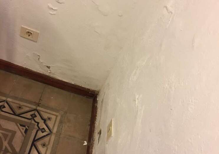 Cubos para recoger el agua que cae del techo (Foto IUC) Cubos para recoger el agua que cae del techo (Foto IUC)