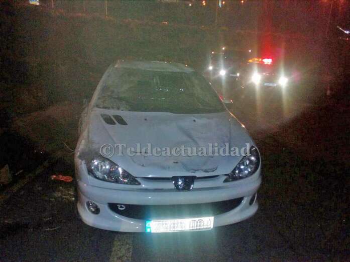 Un vehículo acaba de volcar hace unos minutos en la cercanía de la rotonda de acceso al Valle de Jinámar desde la GC-1, a la altura del CC El Mirador. Sus ocupantes, por causas que se desconocen, abandonaron el coche y el lugar del accidente antes de la llegada de los bomberos y otros servicios de emergencia. La Policía Local de Telde investiga el suceso. TA avanza imágenes.