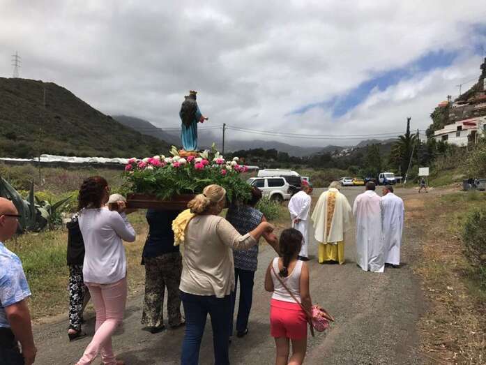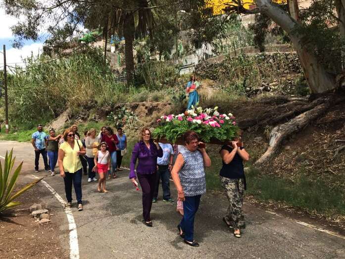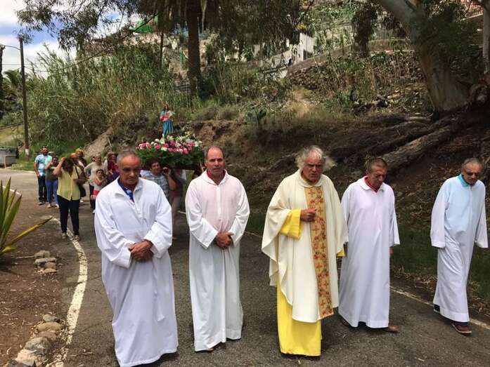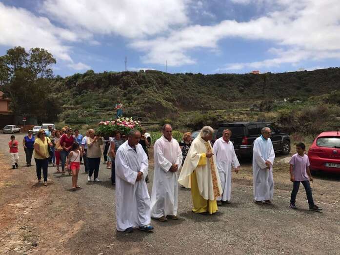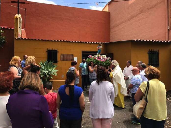 El barrio de Tecén celebró este domingo la procesión de María Auxiliadora. Tras una misa oficiada por el sacerdote Fernando Báez, la imagen salió de la ermita a hombros de los vecinos.