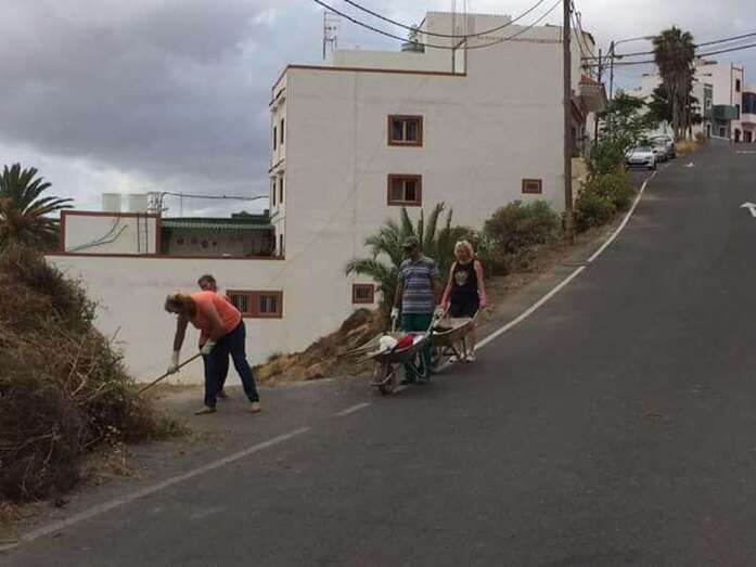 Pertrechado de carruchas y sachos, un grupo de vecinos de Tara se han lanzado a la calle para limpiar sus vías eliminando hierbas y retirando la basura acumulada, en una loable iniciativa del colectivo ciudadano de este núcleo de pasado aborigen.