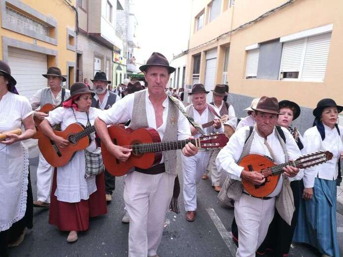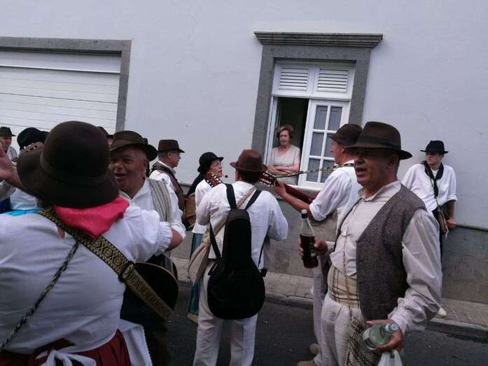La marcha de la parranda de la AV El Roque Azucarero no tiene límites. Ayer sábado estuvo en la romería de Arucas en honor de San Juan Bautista, acompañando al grupo de baile Anzar, también de Telde, invitados por la organización de las fiestas.