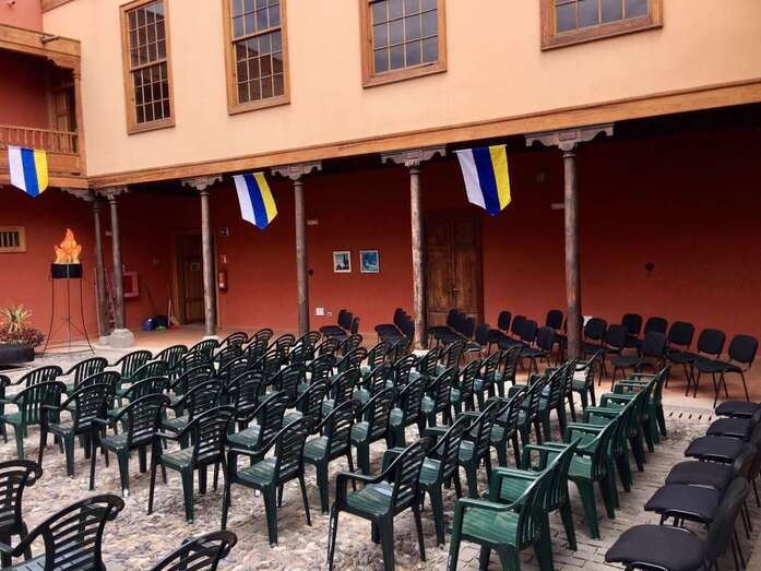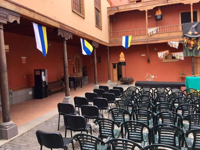 El patio de la Casa Condal ya está bellamente engalanado para el pregón de las fiestas patronales de la ciudad en honor de San Juan que leerá esta noche el poeta Julio Pérez Tejera (20.30 horas). Tras la lectura del pregón, Heriberto Zerpa y el Coro Amati del Círculo Cultural de Telde ofrecerán un concierto.