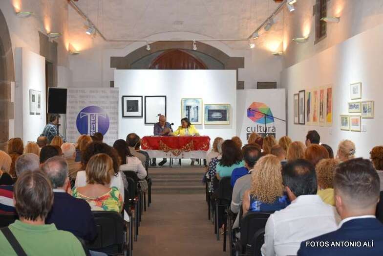 La ermita de San Pedro acogió este viernes la presentación Culturas a destiempo, obra de los poetas y escritores Olga Chulani y Adolfo García que versa sobre la vida de una mujer que cuenta sus vivencias de dos culturas. Asistieron unas 50 personas.