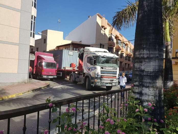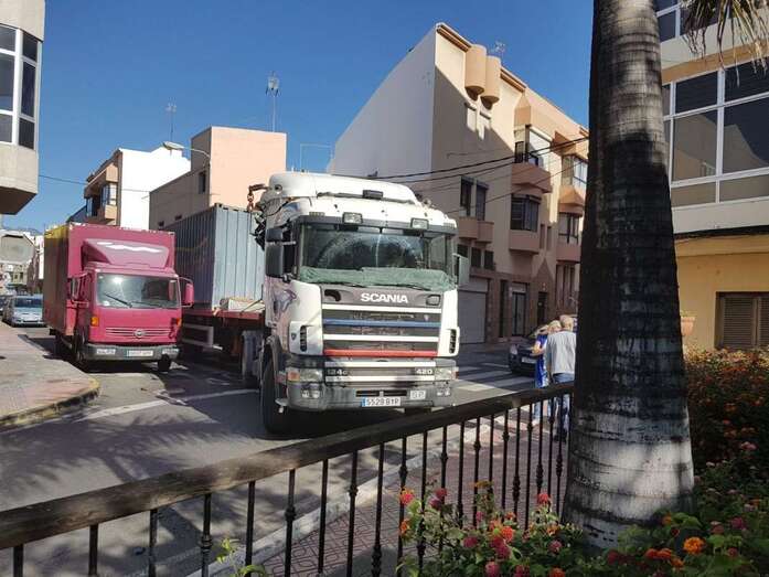 El problema para poder girar de un camión articulado de largas dimensiones, debido a la presencia de una camioneta aparcada en una esquina, ha originado un gran atasco de tráfico, de más de 20 minutos, en la confluencia de la calle de José Vélez con la de Gonzalo de Jaraquemada, en el sector de la rotonda de La Barranquera.