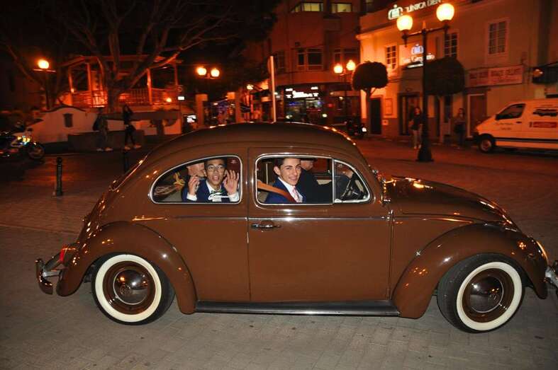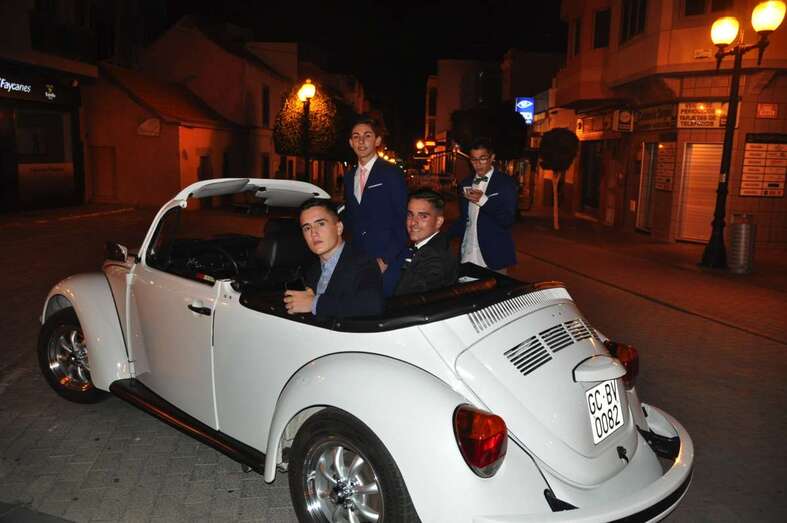 Los alumnos de 4º de la ESO del Colegio Enrique de Ossó celebraron su reciente graduación paseando sus orlas por el centro Telde sobre los míticos e incombustibles coches Volkswagen Tipo 1, más conocidos popularmente como escarabajos.