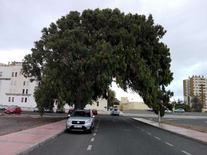 Vecinos de Jinámar alertan del estado en que se halla un árbol que está en la esquina de la calle de Ignacia de Lara, en la trasera de la Iglesia de La Concepción. Afirman que el tronco está podrido y su gran copa sobrecargada e inclinada. IUC pide que técnicos municipales analicen su estado para evitar posibles accidentes.