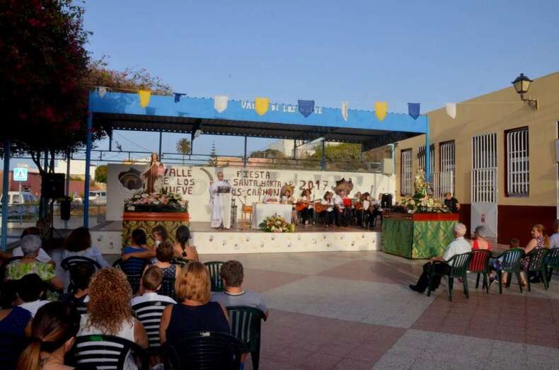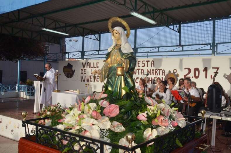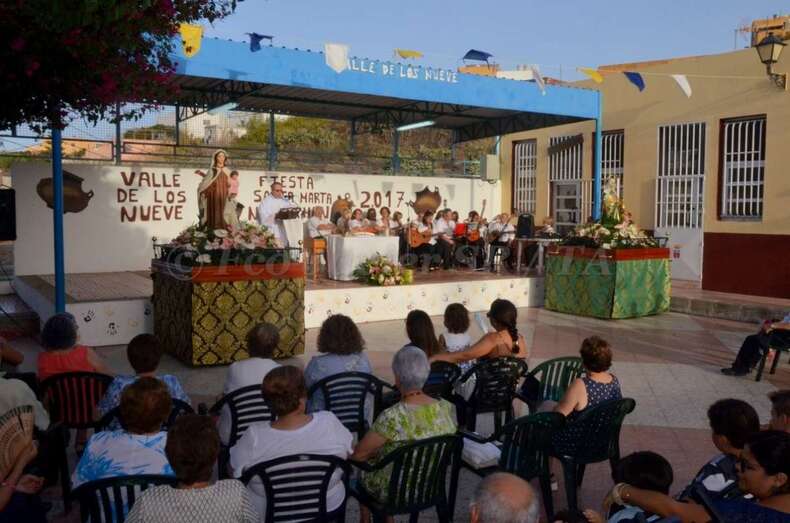 El sector del Valle de los Nueve Bajo rindió honores este sábado a sus patronas Santa Marta y la Virgen del Carmen con una misa en plaza pública y posterior procesión religiosa por las calles del barrio. La fiesta con actividades infantiles a partir de las 18.00 horas.