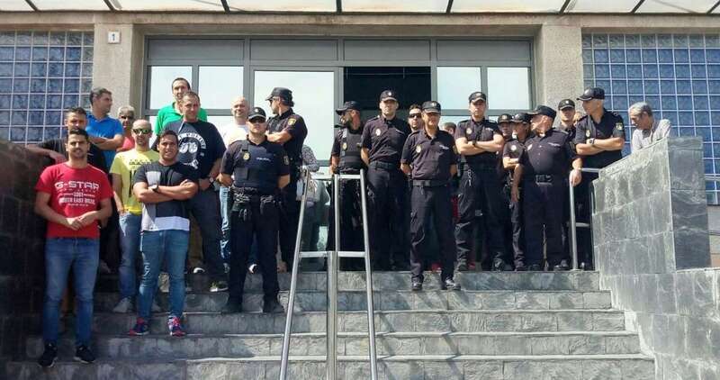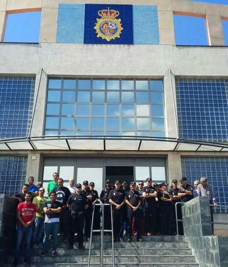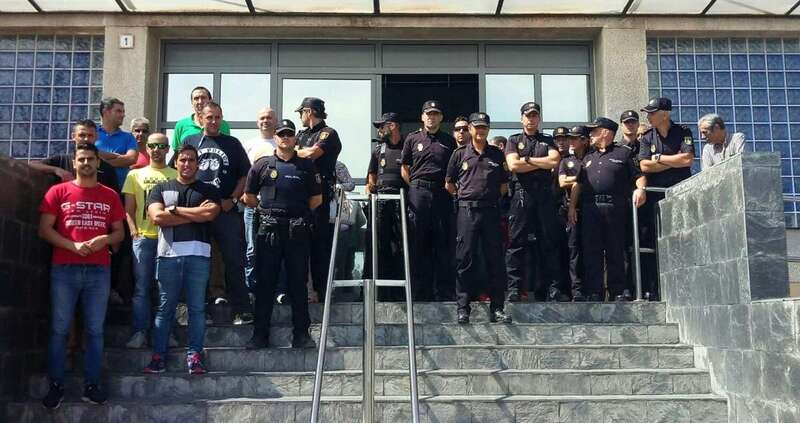 Un grupo de agentes del Cuerpo Nacional de Policía se concentró este mediodía en la Comisaría de Telde para visibilizar su apoyo a los efectivos de las Fuerzas y Cuerpos de Seguridad del Estado desplegados en Cataluña. Una movilización que se ha repetido en otros muchos puntos de España.