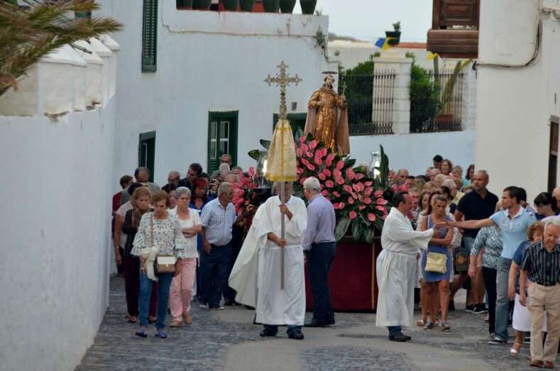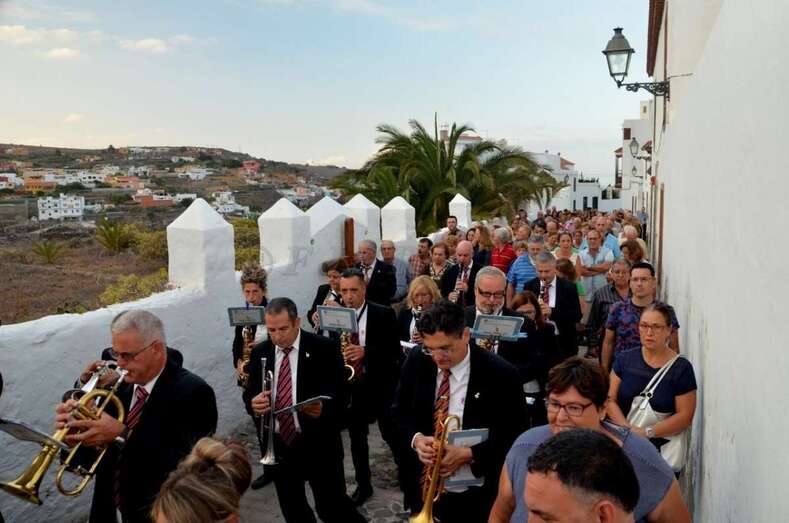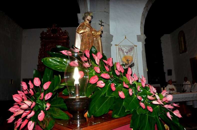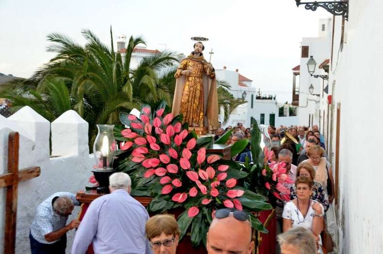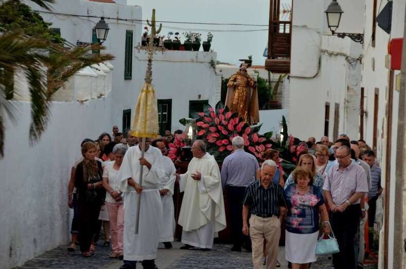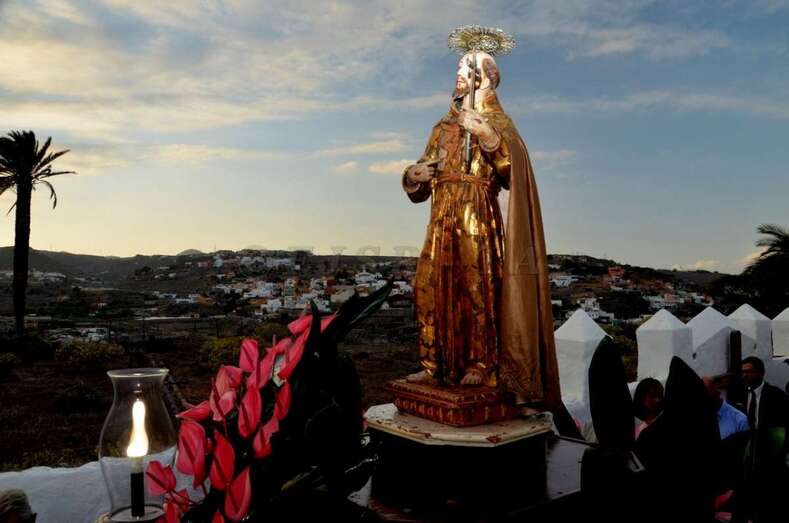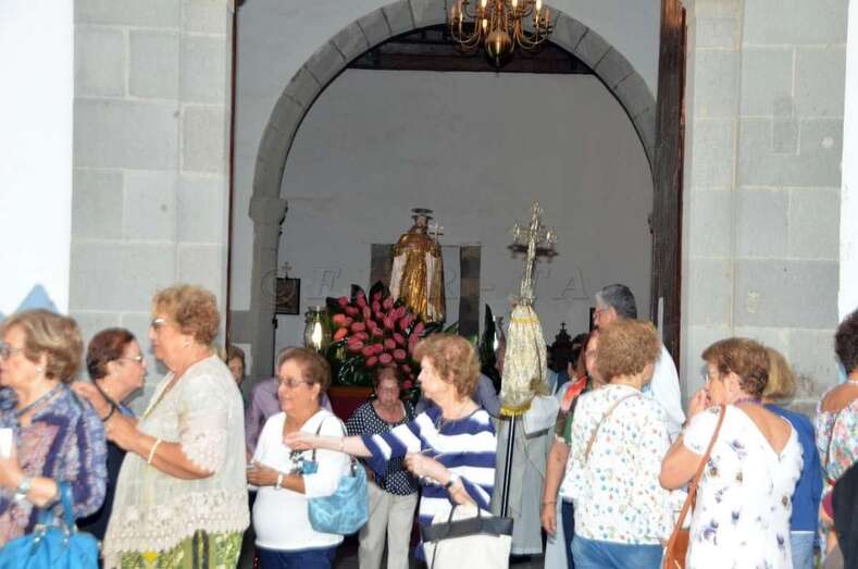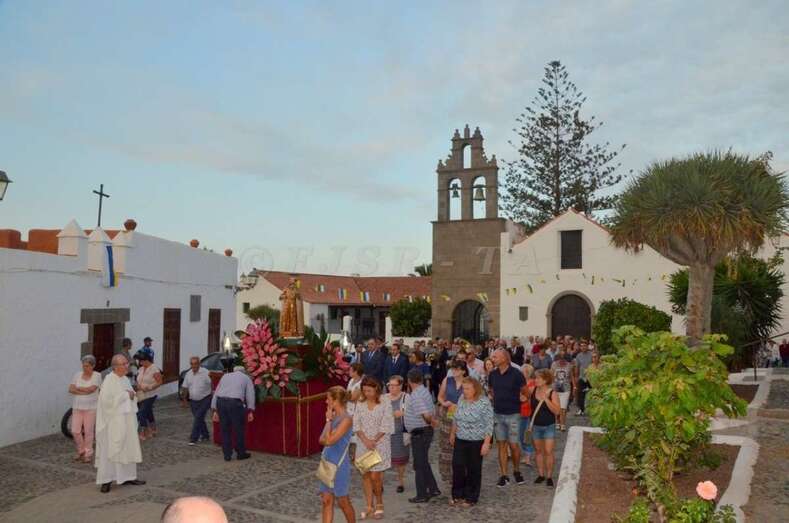 Un nutrido grupo de vecinos acompañó esta tarde al trono de San Francisco Asís en su procesión por las calles del entorno conventual de Telde que toma su nombre. El desfile por las empedradas vías, acompañado por la Banda de Música, tuvo lugar después de la misa oficiada por el párroco José María Cabrera.