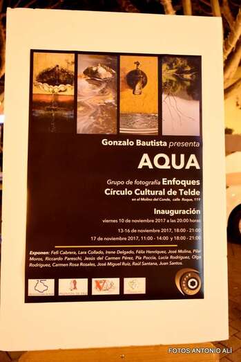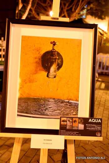 La exposición Aqua, promovida en su sde por el Círculo Cultural de Telde, ha salido de su local y se muestra al aire libre en el entorno de la plaza de Los Llanos. Recoge un conjunto de instantáneas captadas por integrantes de Enfoque, el grupo de fotografía de esta entidad teldense.
