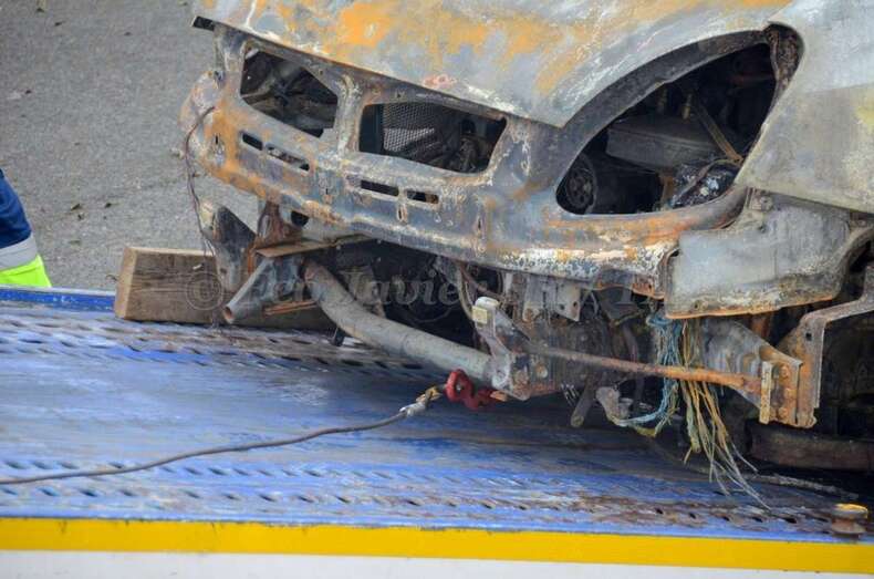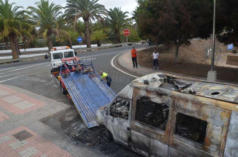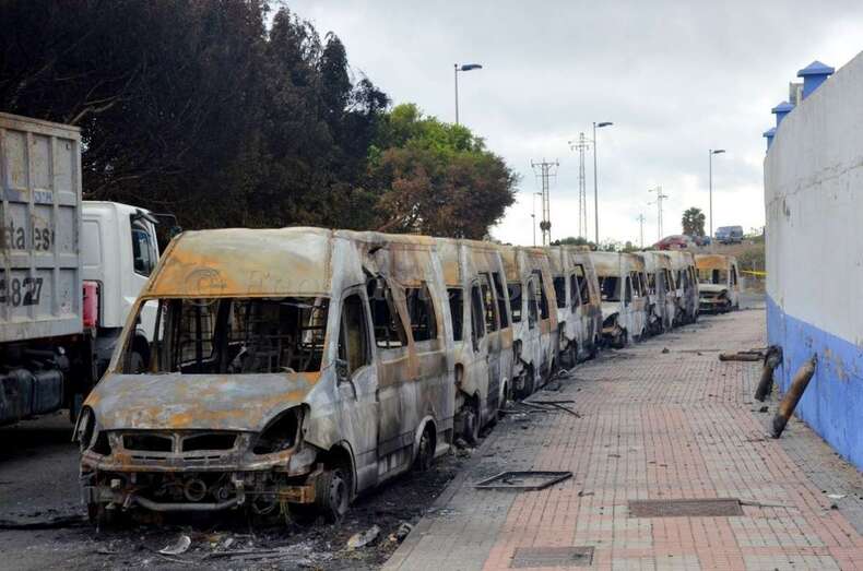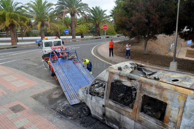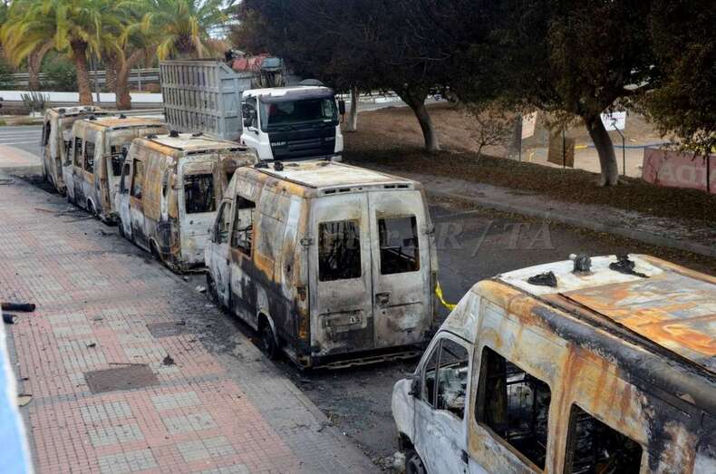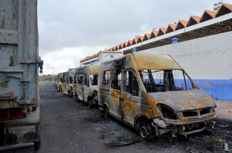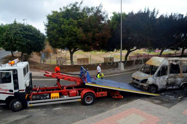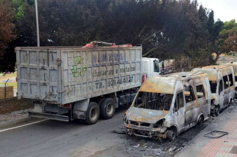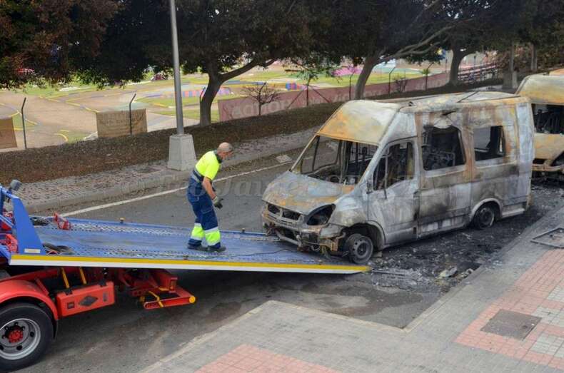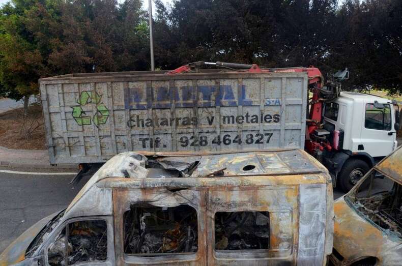 Este miércoles comenzó la retirada de los vehículos calcinados (Foto Francisco J. Ravelo)