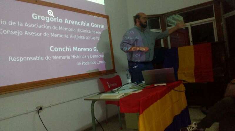 La Fraternidad acogió este sábado una charla sobre la Memoria Histórica organizada por Podemos e impartida por Gregorio Arencibia, secretario de la AMH de Arucas, y Conchi Moreno, responsable de Memoria Histórica y Democrática de Podemos de Canarias.