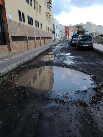 Grandes charcos en la calle sin asfaltar de Santiago de Compostela (Foto TA) Grandes charcos en la calle sin asfaltar de Santiago de Compostela (Foto TA)
