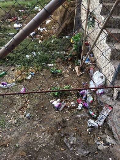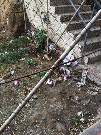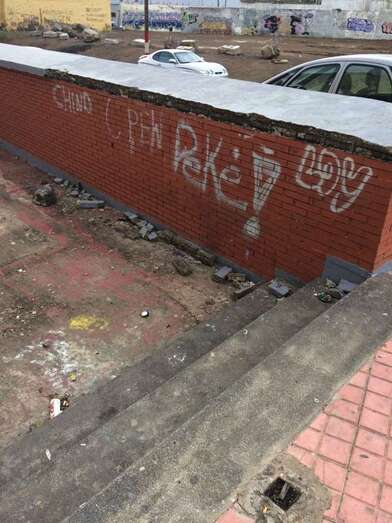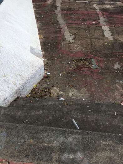 La plaza de Jinámar y su entorno no es precisamente que presenten su mejor cara después de las recientes fiestas. Con muros descascarándose y recipientes de cristal, latas y demás basura que se acumula por los rincones. Los vecinos piden una actuación de limpieza.