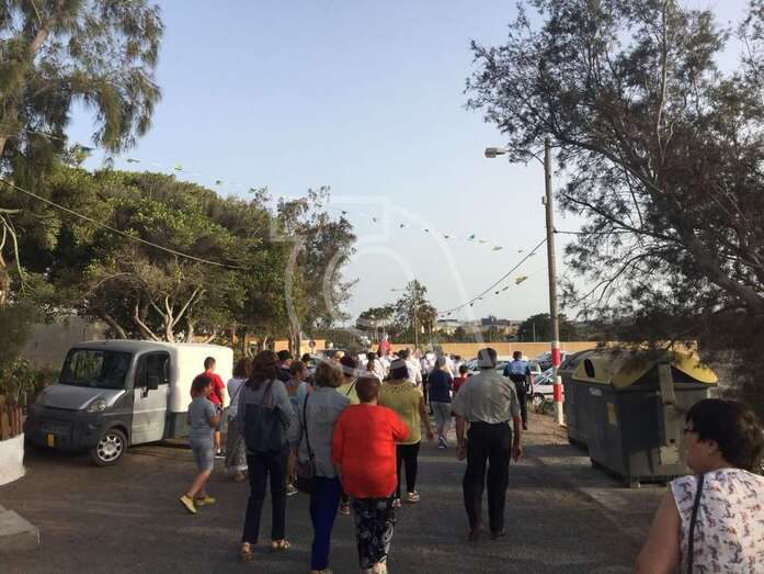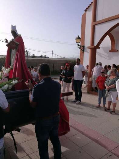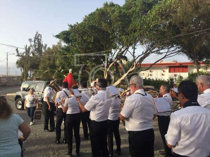 San Fermín procesionó este sábado entre el Caserío de Gando y la ermita de Santa Rita, en Ojos de Garza, donde tendría lugar la ofrenda al patrono. El desfile popular contó con el acompañamiento de la Banda Municipal de Telde.