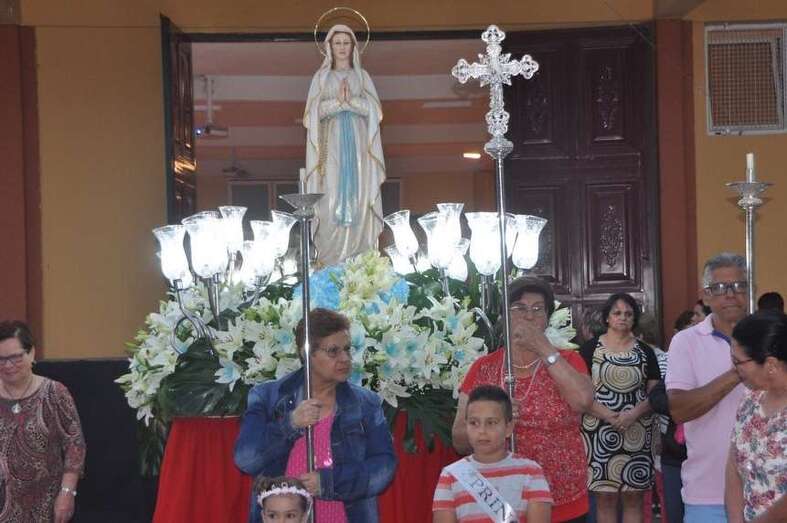 Momento en que sale del templo la Virgen de Lourdes (Foto TA)