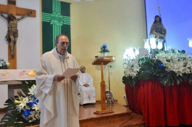 Momento en que sale del templo la Virgen de Lourdes (Foto TA) El Goro procesionó este domingo a su patrona, la Virgen de Lourdes, por las calles del barrio después de una misa oficiada por el párroco de la zona, José Ramírez.
