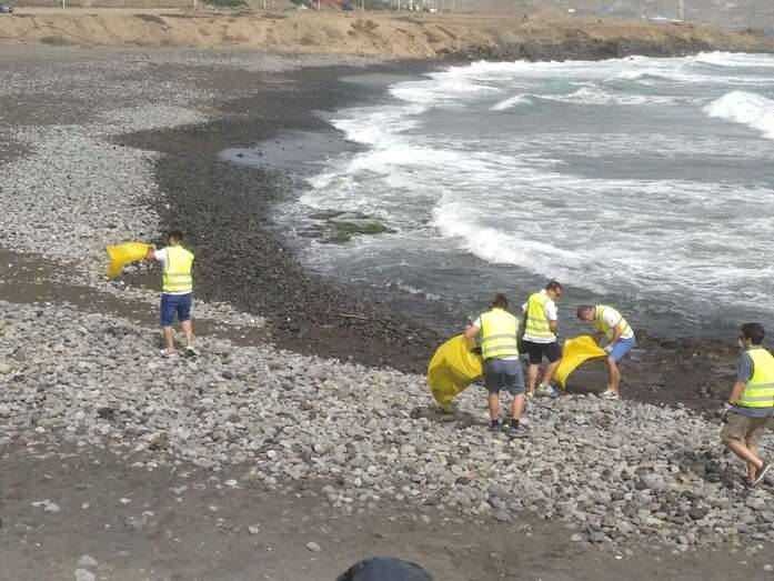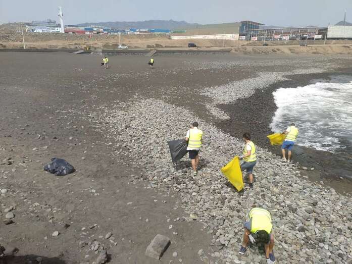 Empleados de la empresa Pernod Ricard llevaron a cabo el sábado una nueva acción de limpieza en la playa de La Restinga con la colaboración de las áreas municipales de Limpieza y Medio Ambiente.
