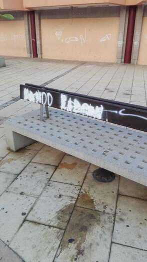 Las pintadas han aparecido sobre bancos, papeleras y panales publicitarios (Foto TA). Las pintadas han aparecido sobre bancos, papeleras y panales publicitarios (Foto TA).