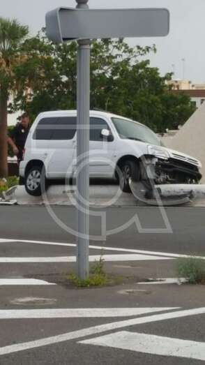 Una furgoneta marca Citroen chocó violentamente hace unos minutos contra la rotonda de Daora, en el centro urbano de Telde, y quedó montada sobre ella. No hubo que lamentar heridos. Intervinieron Policía Local y una ambulancia del SUC.