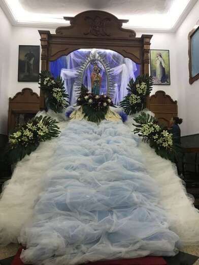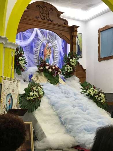 Momento de la ceremonia de anoche (Foto TA) La Virgen de las Nieves, patrona de Lomo Magullo, volvió anoche a su camarín en el templo que está bajo su advocación. La solemne ceremonia tuvo lugar después de una misa.